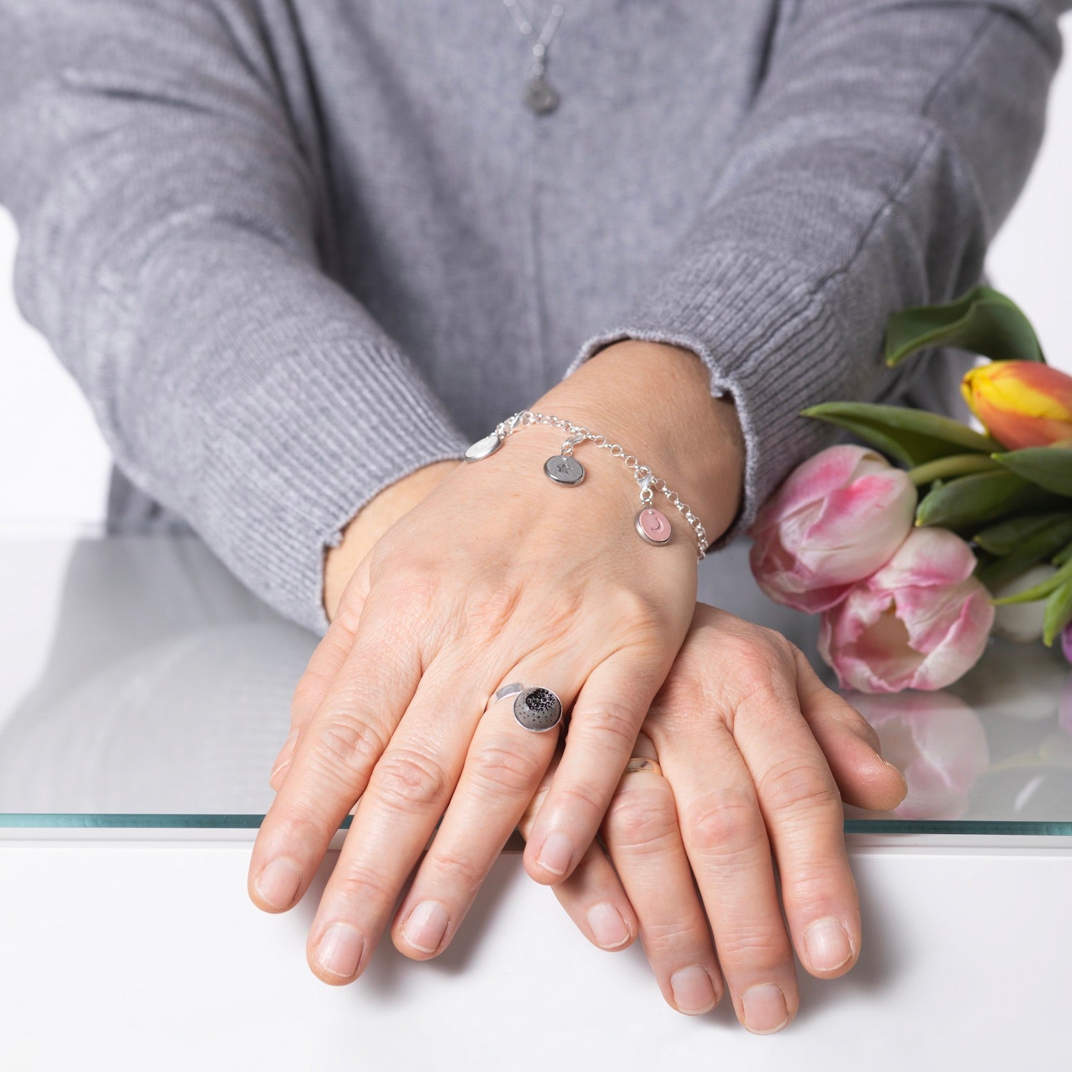 Der Ring Kora ist eine Verkörperung modernen Designs und edler Eleganz. Seine anthrazitfarbene Beton-Oberfläche sorgt für einen luxuriösen Look. Mit dem offenen Ring kannst du auf vielseitige Weise ein Statement setzen. Verlieben dich im Handumdrehen in ein Accessoire, das dein Outfit abrundet! Dieses Unikat sollte in jedem Schmuckkästchen und Stil-Herzen einen ganz besonderen Platz haben, denn unser einzigartiger Schmuck